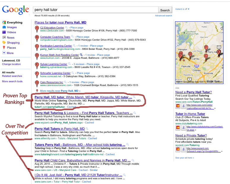Our goal is to get your website (the one we provide you with) listed on the top of all major search engines under dozens of different keywords that parents would be searching for when it comes to helping their child improve academically.