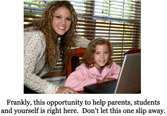 PS - Let me remind you...this system could easily make you an extra $18,000 per school year tutoring from home only six hours a week! That means you get your summers off to do whatever you want. Vacation, home improvements... it's all up to you! Even if you decide to tutor this summer, you can now do it from anywhere you have an internet connection.